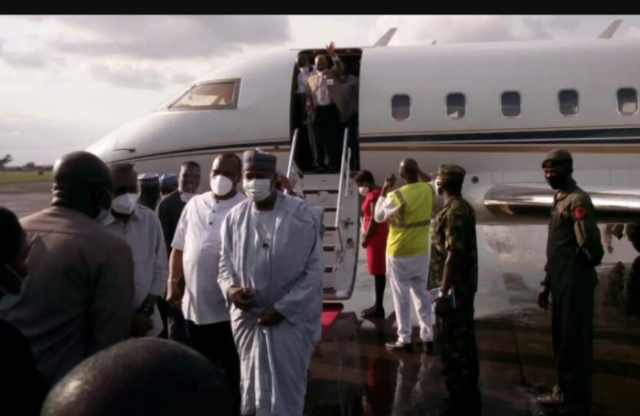 At about 5 p.m. today, an aircraft conveying the Minister of Aviation, Senator Hadi Sirika, landed at the airport.