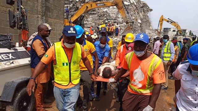 The PUNCH reported that the 25-storey building collapsed on Monday trapping no fewer than 20 people in the rubble.