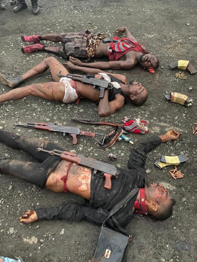 5. Three AK 47 Rifles, one Pistol, five AK 47 magazines with ninety two rounds of live ammunition and criminal charms were recovered. The assailants were identified as members of the proscribed IPOB and ESN. The driver who drove late Ahmed Gulak and a co- victim who survived have all identified the dead body of the IPOB/ESN members positively as their attackers and also identified the three vehicles recovered as those used by the attackers. During the encounter, two of the police armored personnel carriers (APC) were riddled with bullets but survived the gun battle.