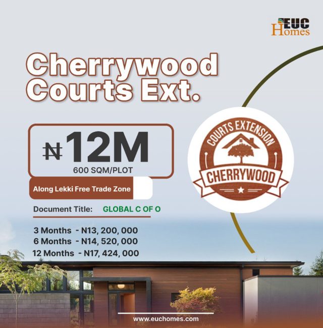 CHERRYWOOD COURTS EXTENSION is a beautiful waterfront estate which is located at Osoroko town, Ibeju Lekki on the popular Cherrywood drive.Buy 4plots of cherrywood court Extension and get 1plot freeLocation: Along Lekki Trade Zone