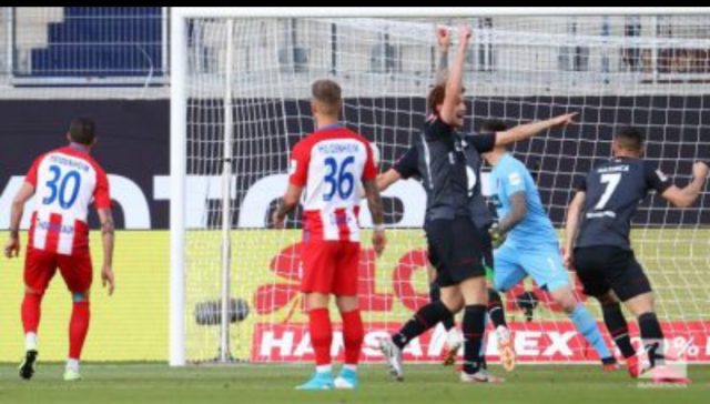 Heidenheim started with a hard-luck by conceding early in the third minute through an own goal by Norman Theuerkauf . And they frantically chased the game until Tim Kleindiest drew level at 1-1 in the 85th minute.